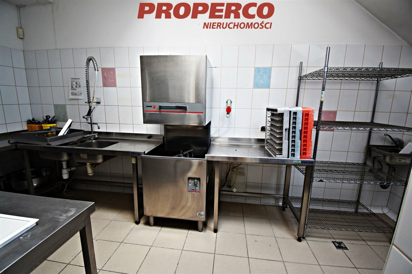 piwnica : magazyny na artykuły spożywcze, naczynia, dodatkowe meble restauracyjne, kotłownia, pomieszczenie na agregat wody lodowej, separator tłuszczy, 2 łazienki.